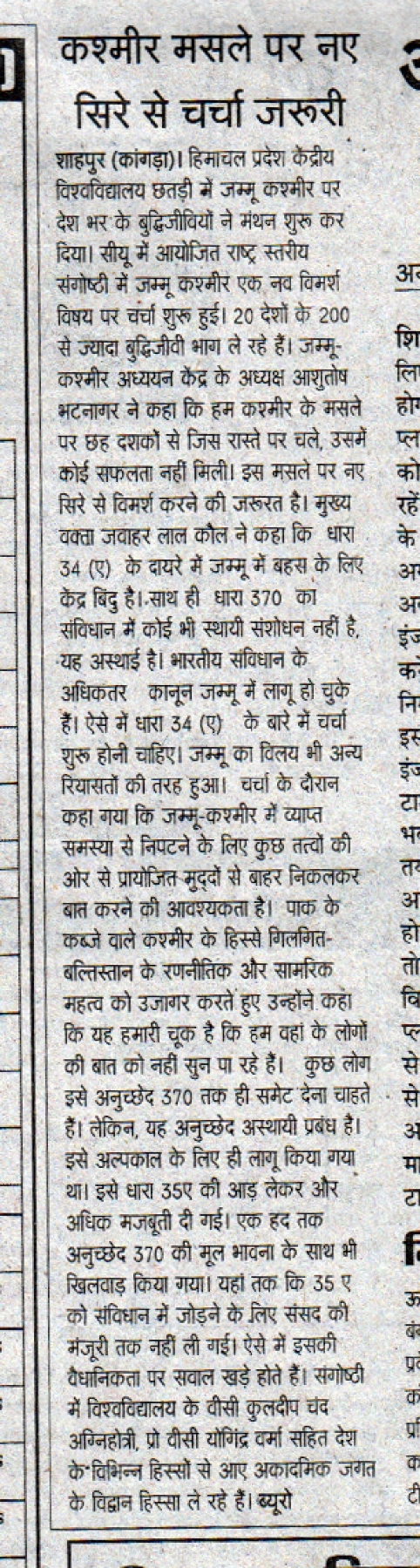 (अमर उजाला ) कश्मीर मसले पर नए सिरे से चर्चा जरुरी