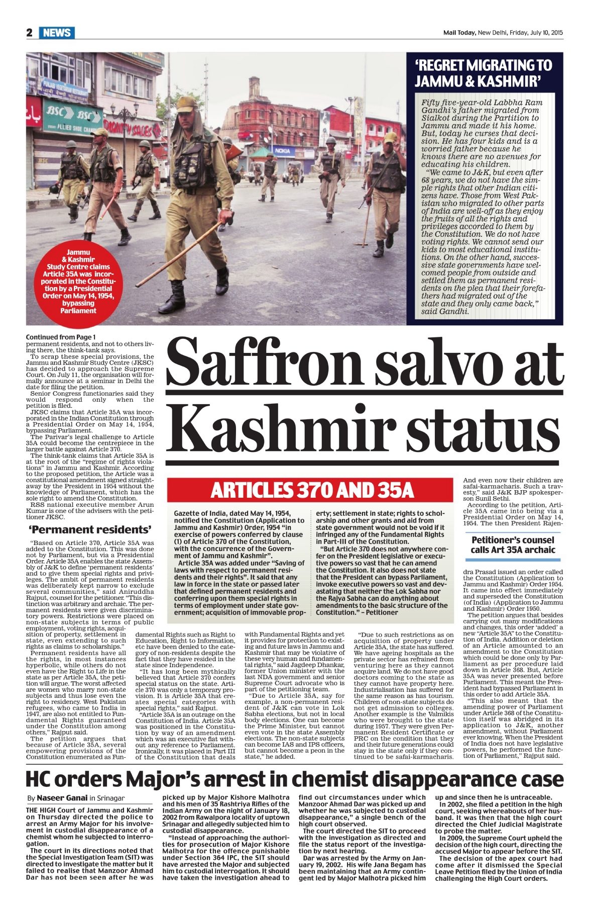 (MAIL TODAY ) saffron salvo at Kashmir status