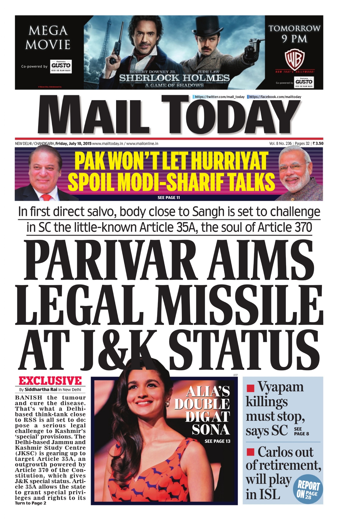 (MAIL TODAY) PARIVAR AIMS LEGAL MISSILE AT J&K STATUS