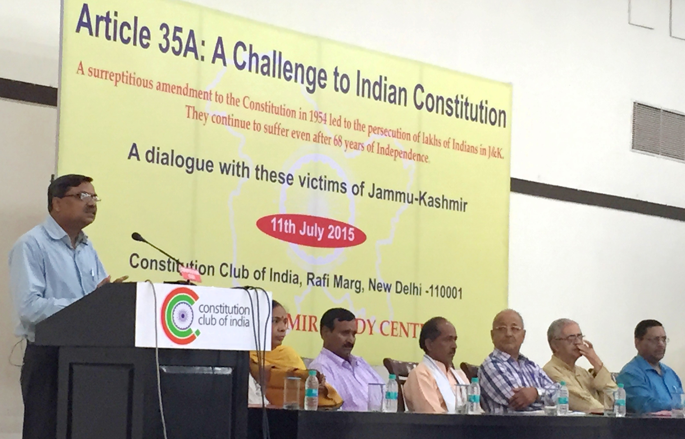 Jammu Kashmir Study Centre (JKSC), an independent think-tank, is getting ready to challenge Article 35A of the Indian Constitution in the Supreme Court. Article 35A was added as a new article to the Constitution of India through an executive order in 1954, without knowledge of the Parliament – a process that appears to be completely against the very spirit of the Constitution. This was announced during a press interaction at the Constitution Club today.