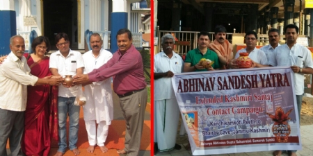 आचार्य अभिनवगुप्त सहस्त्राब्दी समारोह समिति द्वारा आयोजित ‘अभिनव संदेश यात्रा’ का विधिवत शुभारंभ 31 मार्च को गोवा और तमिलनाडु से हुआ। गोवा के प्रसिद्ध शिव मंदिर के महंथ भूषण निलकंठ भावे के नेतृत्व में मंत्रोच्चार और मंगलाचारण के साश संदेश यात्रा का उद्घाटन हुआ। यात्रा के पहले चरण में ग्रुप बी ने गोवा के पांच प्रमुख मंदिरों के बीच जाकर पूजा अर्चना की। इसके बाद कश्मीर से विस्थापित होकर आए शारस्वत ब्राहम्णों के बीच जनसंपर्क भी किया गया। दूसरी ओर ग्रुप ए ने तमिलनाडु के कामाक्षी मंदिर में प्रात: कलश पूजन करके यात्रा का शुभारंभ किया। संदेश यात्रा को दो हिस्सों में बांटा गया है संदेश यात्रा का समापन 10 जून को जम्मू-कश्मीर में होगा। ग्रुप ए की संदेश यात्रा का उद्घाटन चंद्रशेखरेंद्रा सरस्वती विश्व महाविद्यालय के रजिस्ट्रार प्रो. श्रीनिवासन ने किया। इस विशेष अवसर पर तमिलनाडु के प्रचारक राजेंद्रन जी व अजय भारती मौजूद थे। प्रो. श्रीनिवासन ने संदेश यात्रा को संबधित करते हुए कहा कि यह पूरे भारत को एक सूत्र में जोड़ेगी। दक्षिण से उत्तर तक भारत के हर कोने में अभिनवगुप्त के संदेश को जन-जन तक पहुंचाना इस संदेश यात्रा का लक्ष्य है।