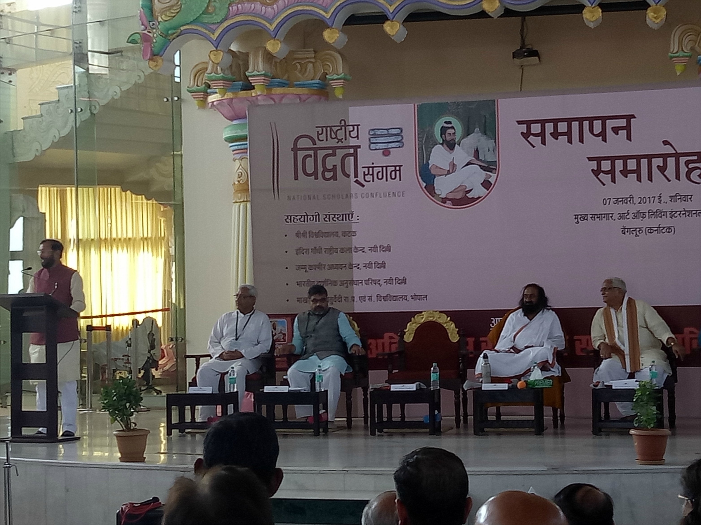 The National Scholars Confluence (Vidvat Sangam) was inaugurated on 6th January 2016 at the Art of Living International Centre, Bengaluru in the presence Sri Sri Ravishankar.
